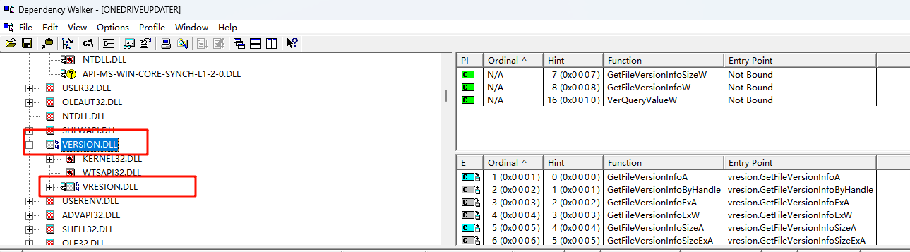 1.由于Version.dll是OneDriveUpdater.exe的依赖DLL,并且与OneDriveUpdater.exe存在于同一目录中,因此将加载它。