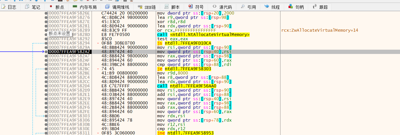 调用NtAllocateVirtualMemory分配指定的内存空间,然后再把payload的ShellCode代码拷贝到该内存空间当中,如下所示: