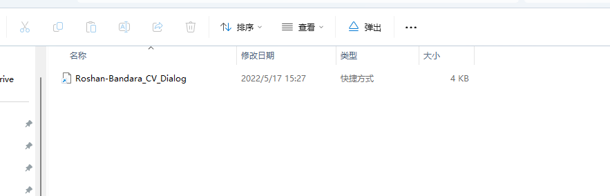 恶意样本是个iso文件,双击挂载iso,一共有5个文件,除了Roshan-Bandara_CV_Dialog这个快捷方式之外其他的文件都是隐藏文件