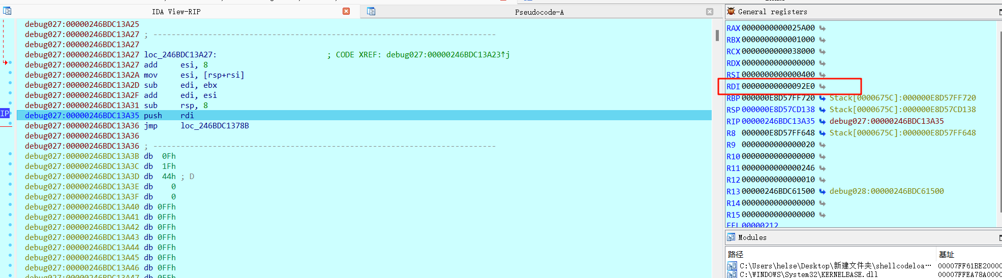 00007FFFF8142326地址在内存中看,即可看到shellcode